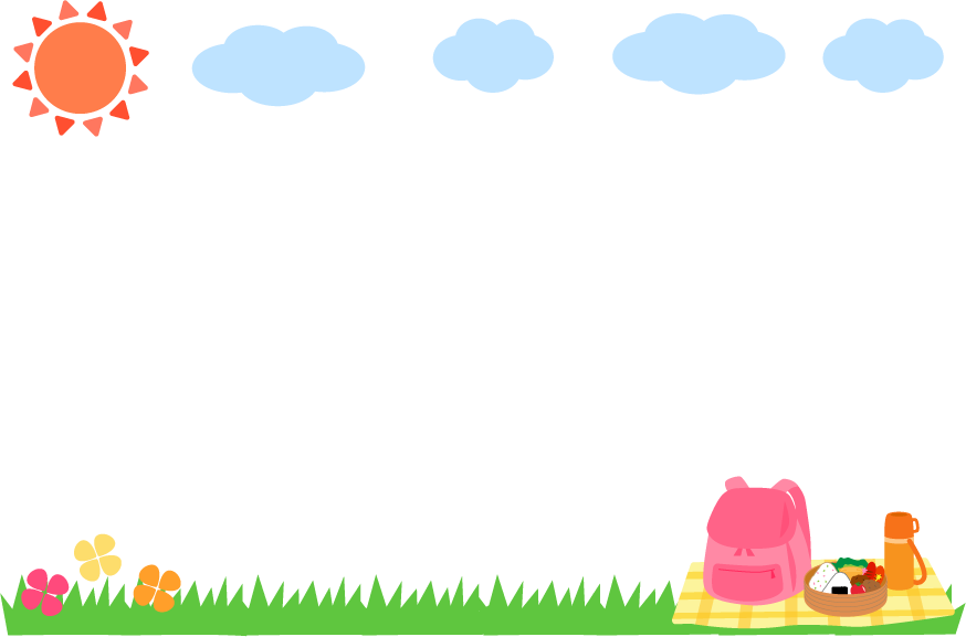 園だより 幼稚園 保育園 こども園 タイトル 遠足 えんそく 春フレーム 秋フレーム リュック 水筒 弁当 お弁当 おべんとう 太陽園だより 太陽 雲