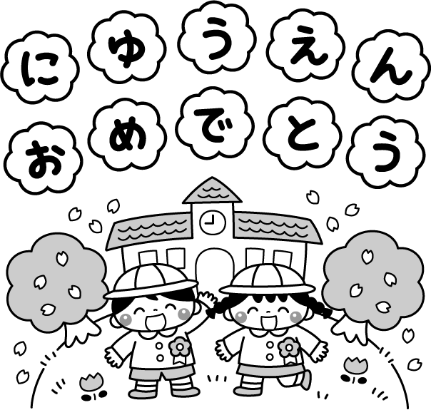 保育園 幼稚園 こども園 園だより えんだより 園児 こども 子ども 子供 男の子 女の子 桜 さくら サクラ 花 花びら 入園 入園式 制服 園舎 桜の木 さくらの木 サクラの木 木 チューリップ にゅうえんおめでとう 入園おめでとう おめでとう