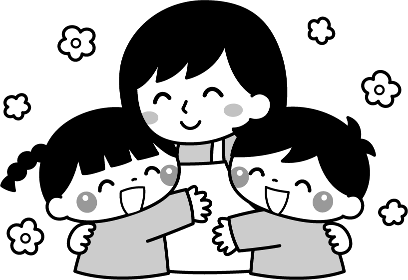 保育園 幼稚園 こども園 園だより えんだより 園児 こども 子ども 子供 女の子 娘 男の子 息子 母の日 お母さん 母親 母 親子 ハグ 抱きしめる 花 なかよし 仲良し