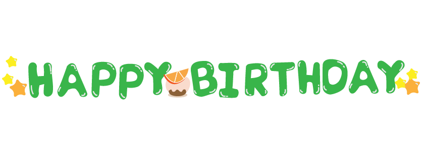 お誕生日 誕生日 夏ミカン オレンジのケーキ バルーン文字 お便り えんだより 園だより 手紙 メッセージ