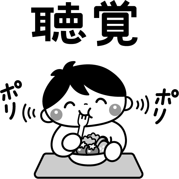 保育園 幼稚園 こども園 園だより えんだより 園児 こども 子ども 子供 男の子 しょくいくだより 食育だより 食育 給食 きゅうしょくだより 五感 聴覚 料理 食べ物 サラダ 野菜サラダ 野菜 ポリポリ 音 耳 きゅうり キュウリ トマト ミニトマト レタス リクエスト