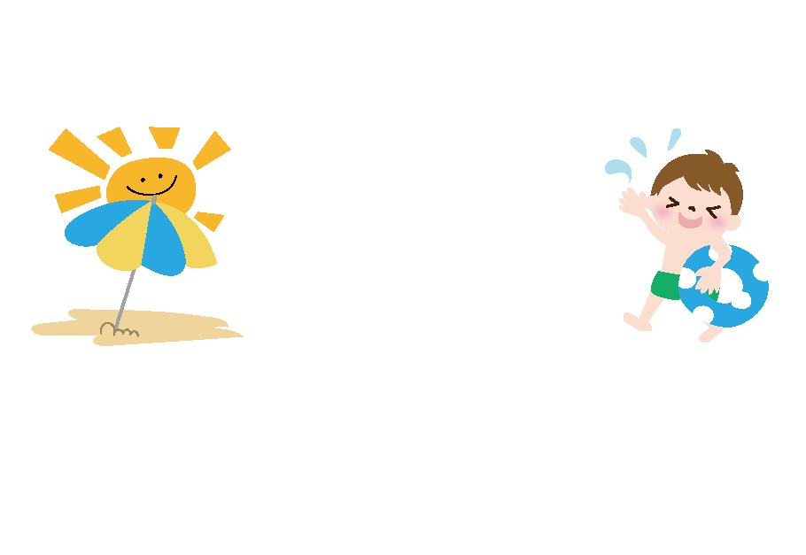 クラスだより 7月 8月 スイカ ひまわり 朝顔 海 ビーチボール ビーチサンダル えんだより夏フレーム